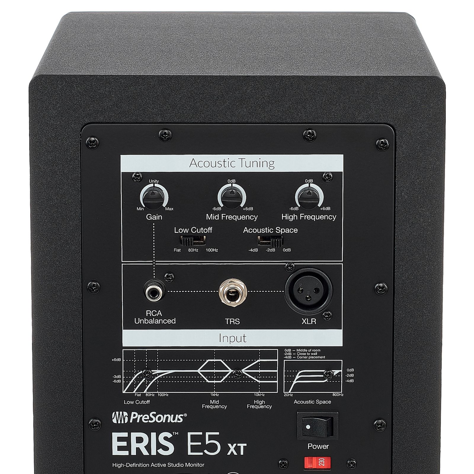 The Presonus Eris E5 XT is a reliable, no frills, and affordable monitor, perfect for the home studio. We all know the complexities involved in improving the acoustics of a room, especially when the latter is not initially designed with music or postproduction in mind. The Eris E5 XT's crossover section is a great help in this respect. Its switchable low-cutting filter suppresses unwanted resonant low frequencies (for instance when the speaker is placed close to a wall) and two continuous filters adjust the midrange and treble by plus or minus six dB. In addition, the automated "Acoustic Space" function cleans up the often critical low-midrange and ensures that the audio is reproduced every bit faithfully as possible.