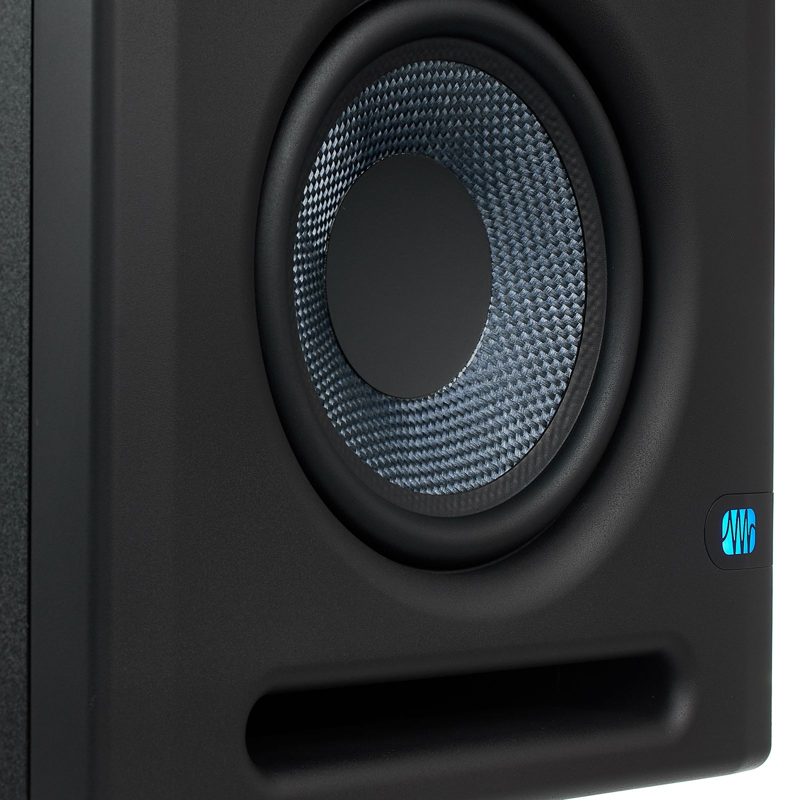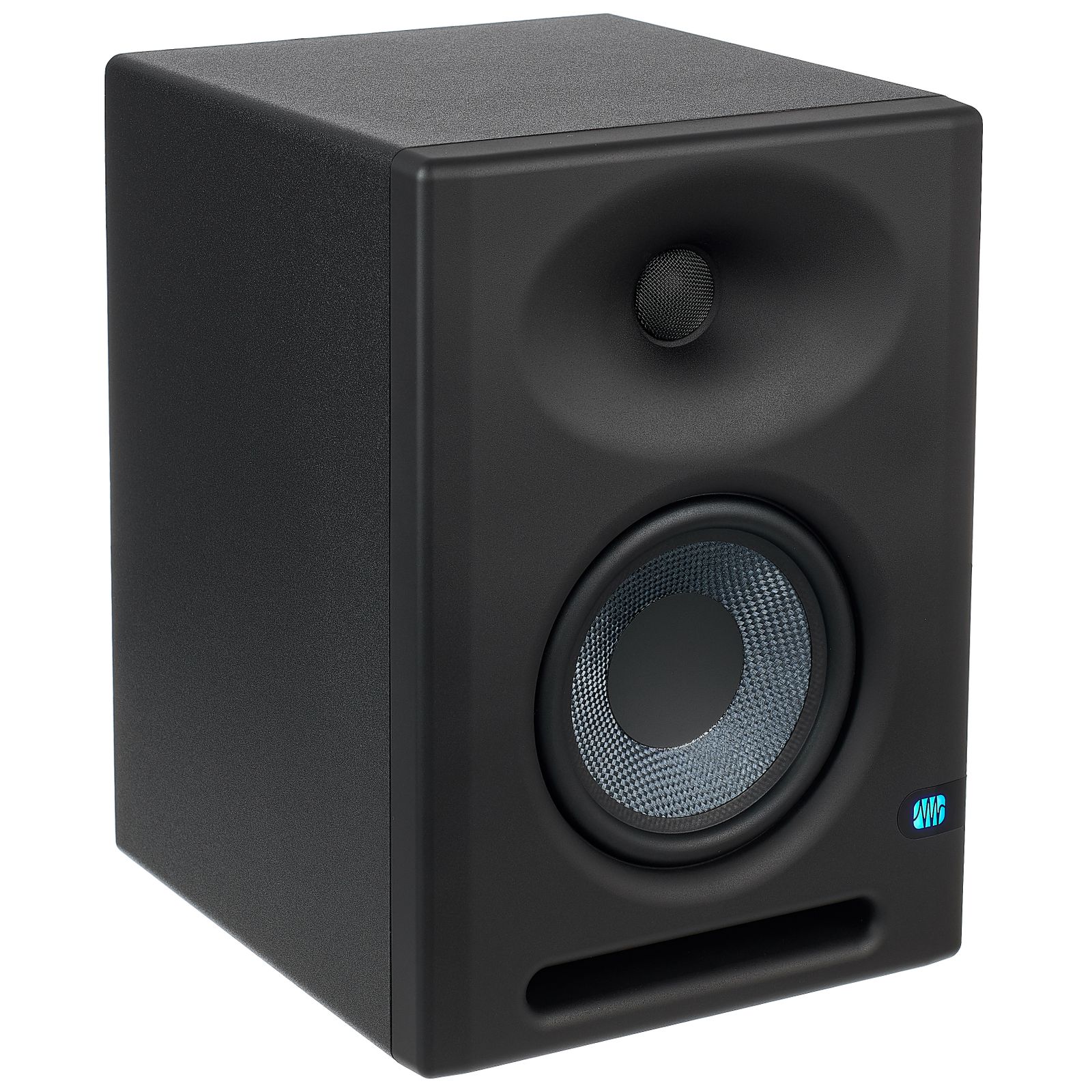 The Presonus Eris E5 XT is fitted with a carefully designed and solidly built bass reflex chiffonier made of vinyl-laminated MDF. Equally with all the Eris models, the woofers are made of Kevlar, producing a clean and precise bass response and even diffusion through all the lower frequencies. Similarly, the silk dome tweeter and waveguide reproduce all the high frequencies in a very natural way and provide a wide sweet spot in the listening position. Two separate class AB amplifiers respectively provide 35 and 45 Watts of ability to the tweeter and woofer.